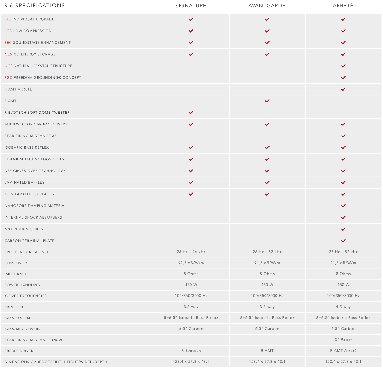 Die R 6-Modelle sind dynamische, feinfühlige, gefühlsbetonte und natürlich klingende Lautsprecher mit viel Liebe zum Detail. Ein grundsolider und leicht zu bedienender Lautsprecher, der beeindruckende Leistung mit Luxus und Raffinesse verbindet.